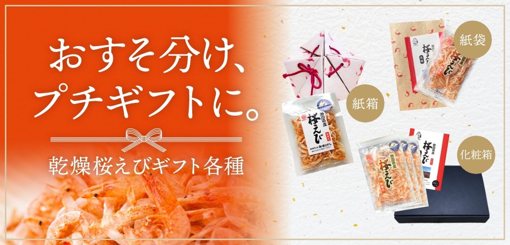 他の画像を見る 2026年春漁新物 乾燥桜えび30g 配送方法「メール便」選択すると【送料無料】 桜えび柄紙袋をお選びいただけます 当店価格 ¥ 1,440 税込 〜 当店価格 ¥ 税込 詳細を見る お気に入り