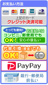 クレジットカード、PayPay、コンビニ後払い、代金引換、銀行振込がご利用いただけます。
