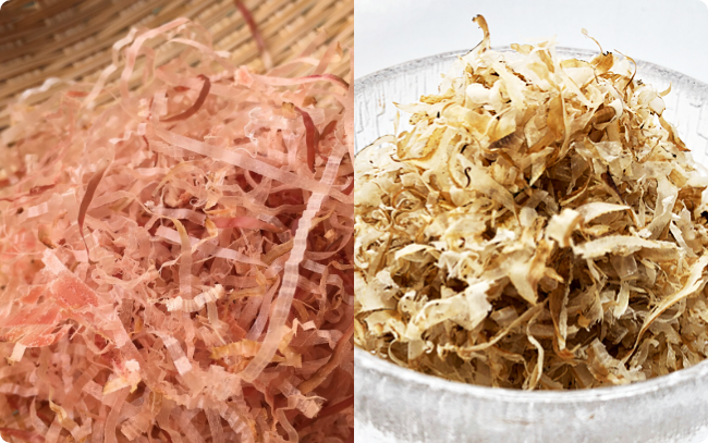 名前の通り、原材料が違うので、風味も大きく異なります。いわし削り節は、もともと風味の強い煮干しからつくっているので、より魚の旨味が感じられます。